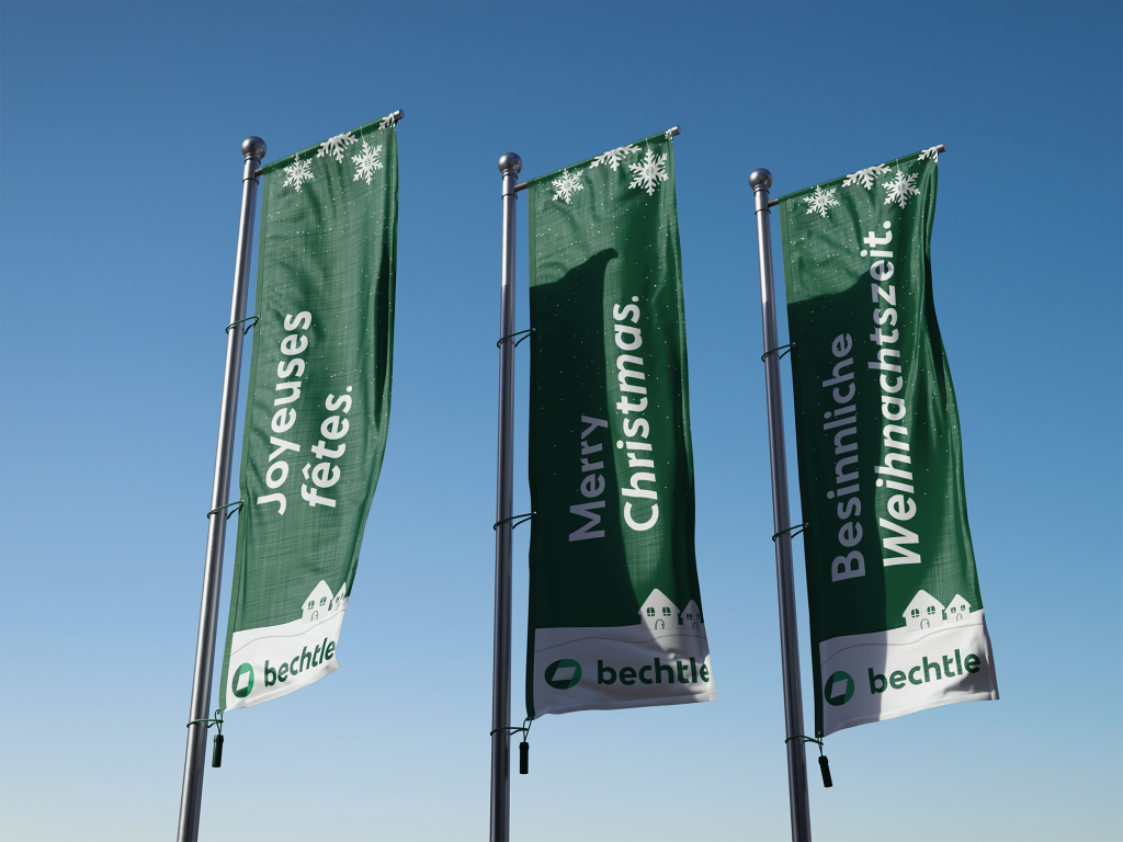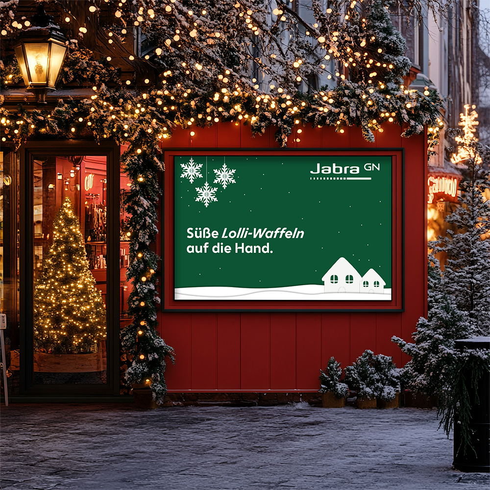 Unsere Aufgabe lag in der Entwicklung des Key Visuals und dessen Übersetzung in alle relevanten Kommunikationsmittel. Von der Einladungskarte über Weihnachtskarten und Standplakate bis hin zu Sponsorenbannern, der Gestaltung der Fotobox und digitalen Teams-Hintergründen.