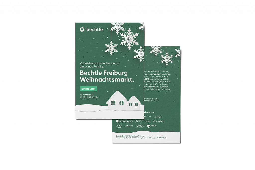 Starke Markenkommunikation endet nicht bei der Kampagne – sie wirkt über alle Touchpoints hinweg. Für Bechtle Corporate haben wir verschiedene Kommunikationsmittel entwickelt, darunter Whitepaper, Flyer und Broschüren. Jedes Medium wurde so gestaltet, dass es die Marke klar, modern und wirkungsvoll repräsentiert – mit einem durchdachten Corporate Design, das über alle Kanäle hinweg konsistent bleibt.