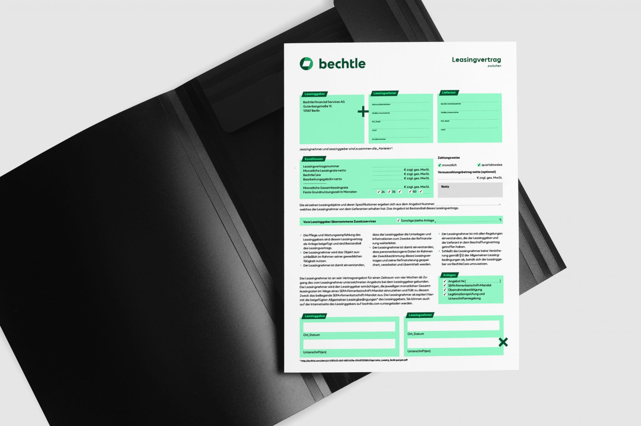 Für Bechtle haben wir bestehende Vertragsvorlagen vollständig neu gedacht – überarbeitet, neu gestaltet und in beschreibbare, Adobe Sign kompatible PDF-Formulare überführt. Das Ergebnis: ein durchgängig digitales, medienbruchfreies Set an Vertragsdokumenten, das künftig als Standard für alle Bechtle-Verträge dient.