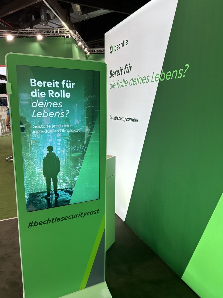 Für Bechtle haben wir auf der it-sa 2024 einen Messeauftritt gestaltet, der IT-Security zum emotionalen Erlebnis machte. Unter dem Motto „Ganz großes Kino“ wurde der Messestand zur cineastischen Bühne – mit den Besucher:innen als Hauptdarsteller:innen.