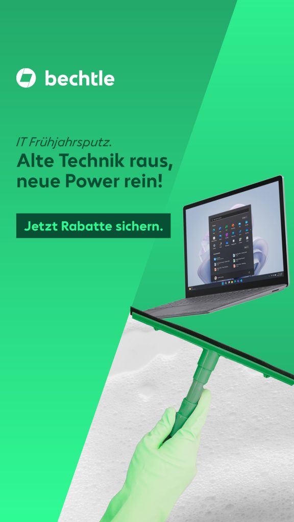 Unsere Kampagne bringt frischen Wind ins Büro. Statt Wischen, Fegen, Schrubben: Altgeräte raus, neue IT rein.